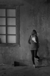 今回のモデルは、福岡の ”two−s”から「さより」さんに切れもらいました。一度スタジオで撮って、凛とした瞳の強さが気に入ちまして、お気に入りになりました、この旧工場跡というパワーがある場所にもって来ても対抗できると思いました・・・